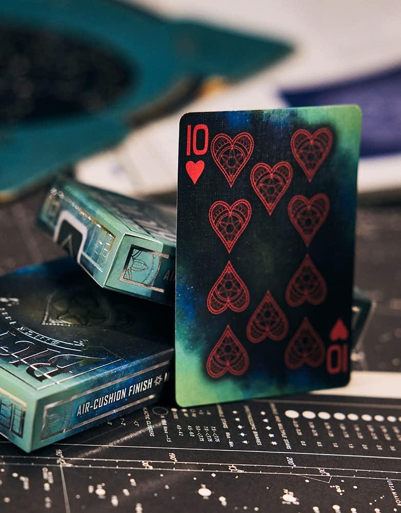 Step into a cosmic realm with Bicycle Stargazer Nebula Playing Cards. Each card in this deck of playing cards features a mesmerizing image of nebulae, with swirling gases painted on the back, turning every hand dealt into a celestial spectacle. These Poker cards glide through your fingertips, their Air Cushion Finish echoing the sensation of drifting through outer space. Encased in an alluring, nebula-themed foil tuck box, this cool deck of cards opens like a portal to distant galaxies, beckoning explorers at heart. Printed on premium Bicycle cardstock, these unique playing cards showcase an elegant blend of stellar beauty and quality. Crafted with pride in the USA, each deck of cards melds cosmic charm with high quality American manufacturing, making the Stargazer Nebula Playing Cards a universe of fun right at your gaming table.