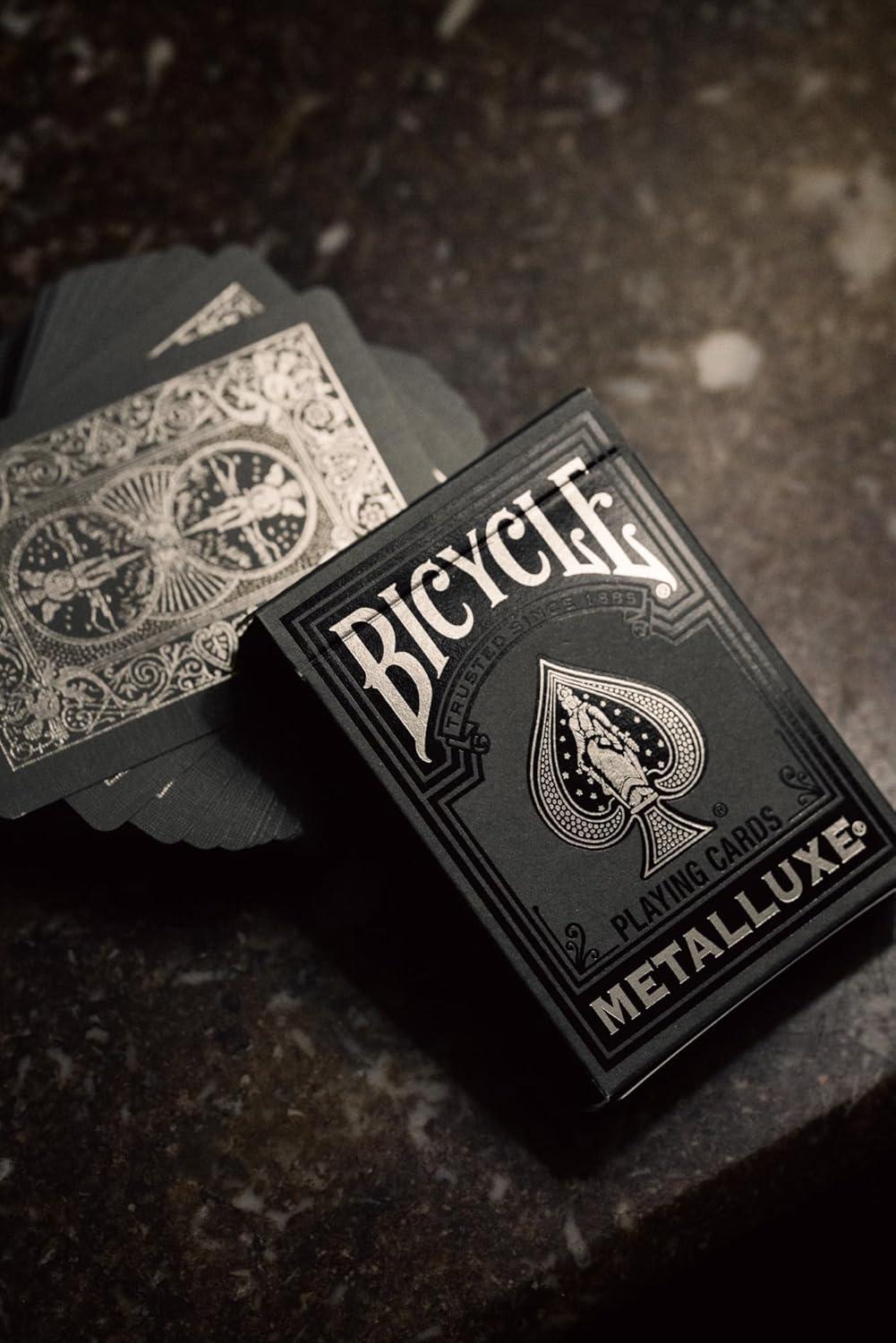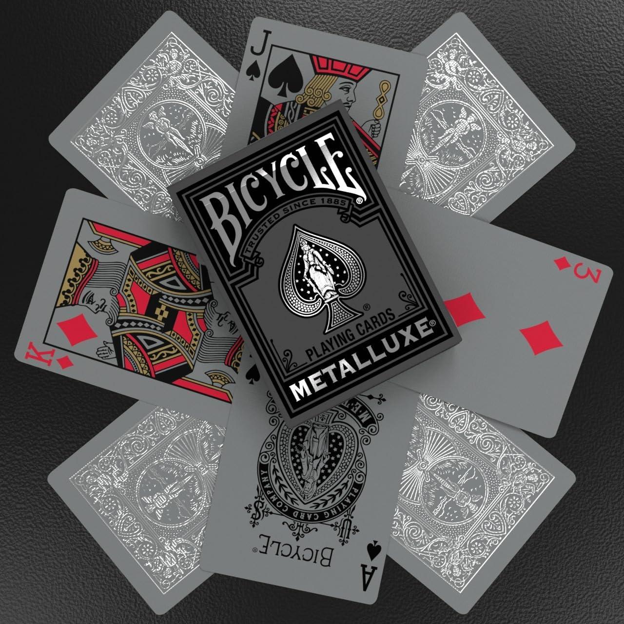 Bicycle Black and Rose Gold Metalluxe Playing Cards – Premium Foil Metalluxe Deck– Classic Poker Size, Collectible Luxury Design, Great for Game Night, Gifting, and Stocking Stuffer(Black and Silver)