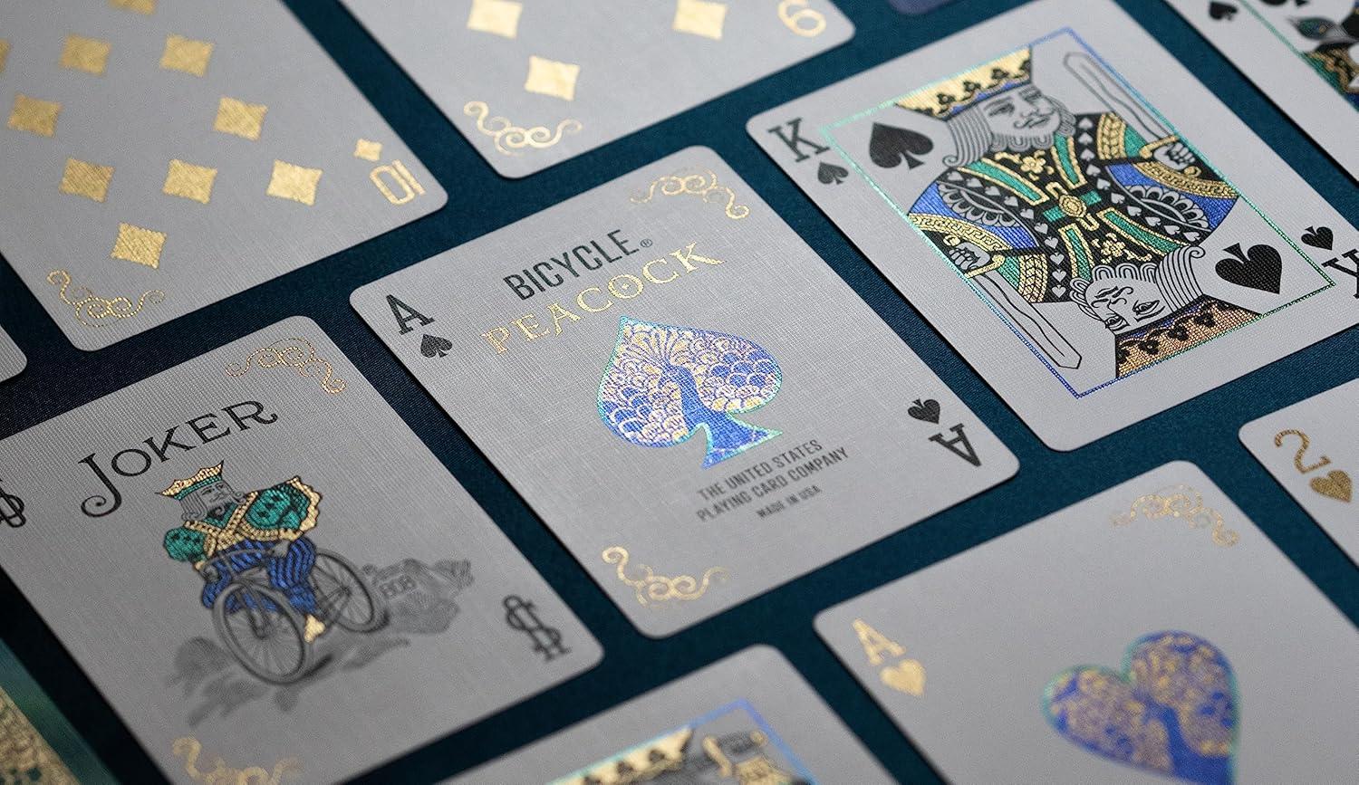 Bicycle Peacock Playing Cards – Purple – Cold Foil Premium Playing Card Deck for Card Games and Magic Tricks – Dazzling Design, Smooth Finish(Green)