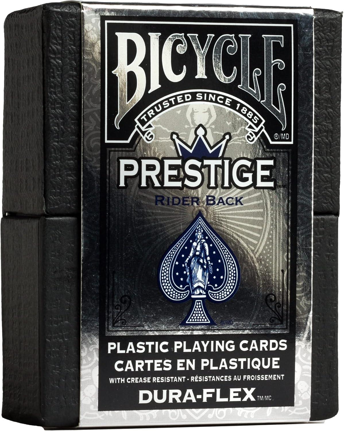 WATERPROOF PLAYING CARDS: Discover Bicycle Prestige Plastic Playing Cards, adorned with the timeless, classic Rider Back design. These durable, waterproof cards provide unparalleled longevity for countless hours of gameplay