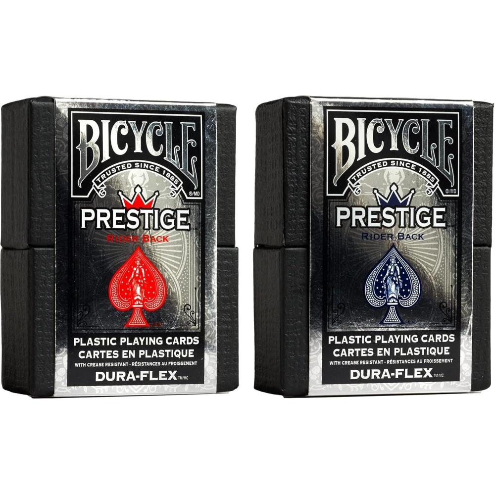 BUNDLE INCLUDES 2 DECKS OF PRESTIGE WATERPROOF PLASTIC PLAYING CARDS: This bundle includes 1 red deck and 1 blue deck of Bicycle Prestige Playing Cards