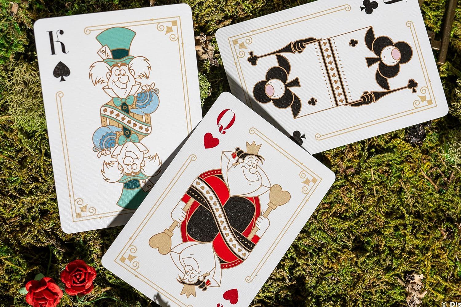 CUSTOM DESIGNED CARD BACKS – Checkered with iconic Wonderland trinkets throughout the deck.
