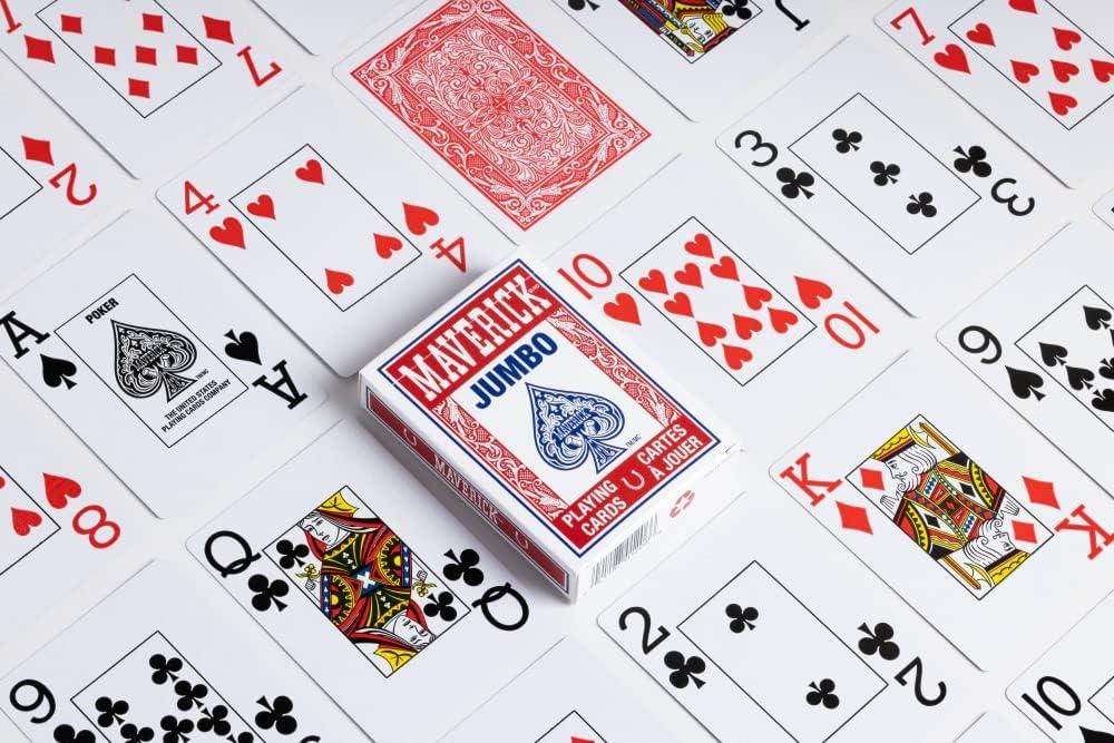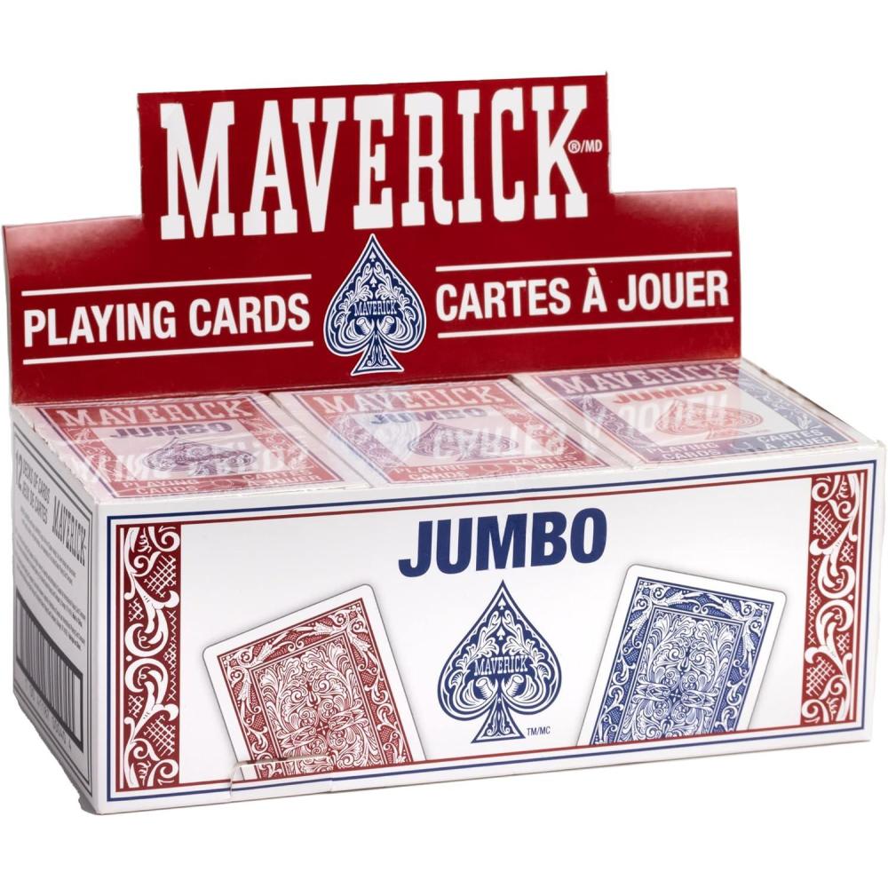 See every play with clarity using Maverick Jumbo Index Playing Cards. Oversized numbers and suits make each hand easy to read, so every player can follow the game with confidence. This 12-pack of jumbo playing cards includes twelve full decks of cards, each with 52 standard poker cards plus 2 Jokers, perfect for poker nights, bridge clubs, or popular card games like blackjack, euchre, pinochle, rummy, or canasta. Finished with a smooth plastic coating, these Maverick jumbo playing cards shuffle easily, handle well, and stand up to repeated play. Built for everyday use, they deliver the reliability, durability, and classic design players expect. From casual card games with family to competitive poker tournaments, these bulk playing cards bring clarity, comfort, and classic Maverick style to every game.
